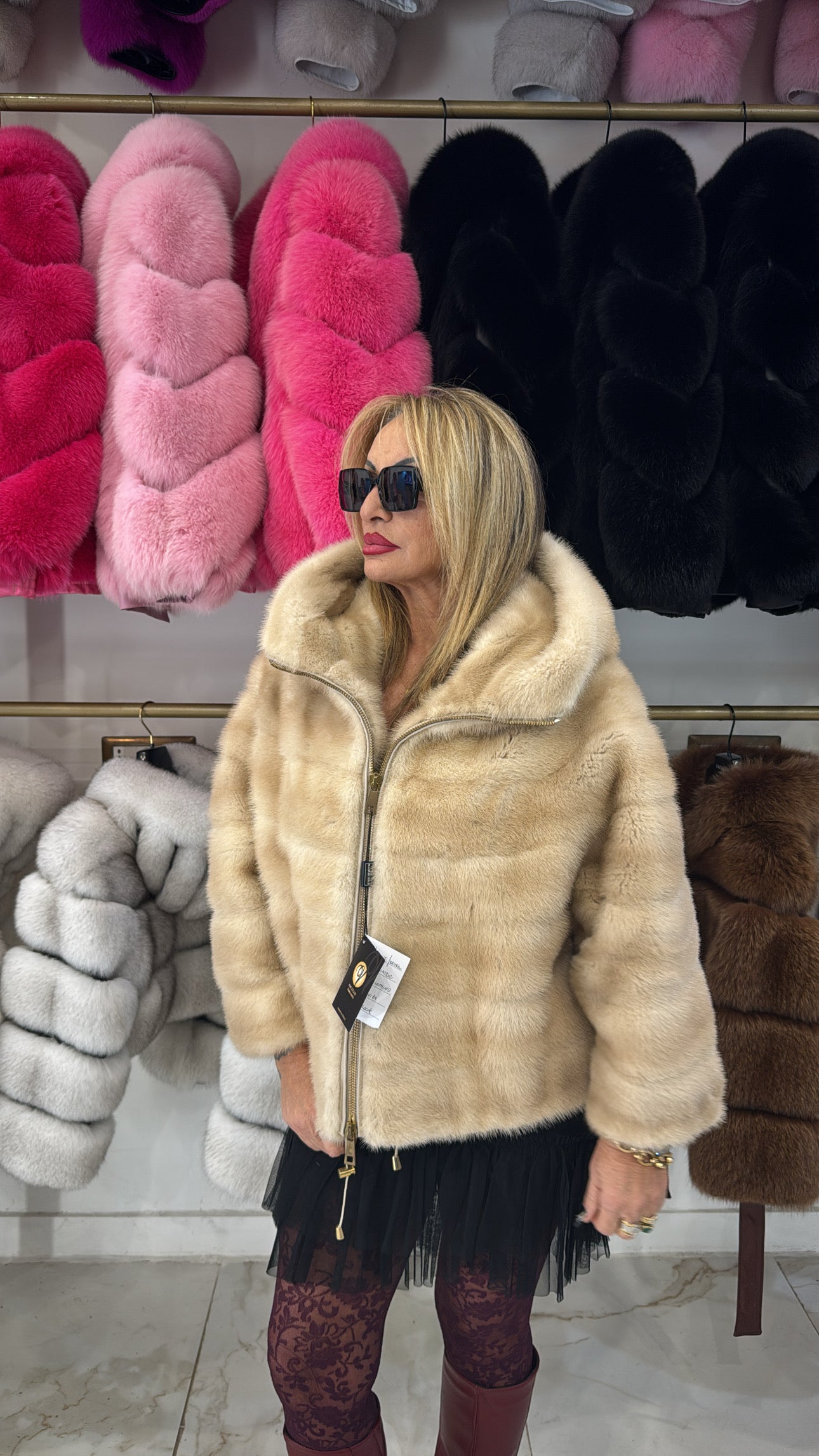 Offriamo una vasta selezione di pellicce di alta qualità, tra cui volpe, visone, cincillà, coniglio, e molti altri. Ogni pelliccia è selezionata attentamente per garantire la massima qualità e lusso.
